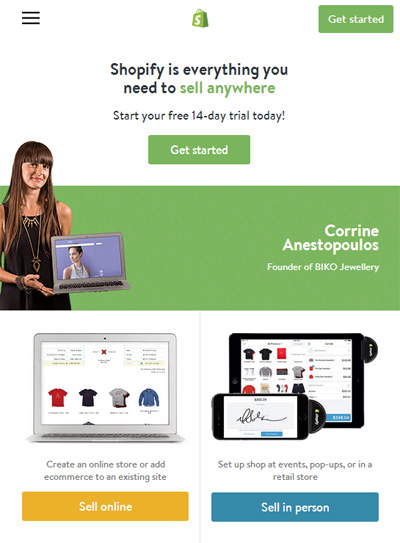 我們發(fā)現(xiàn),Shopify 并沒有像 Amazon 一樣采用復(fù)雜的頁面布局,更沒有放置太多的內(nèi)容在首頁,這使他們可以輕而易舉地實(shí)現(xiàn)響應(yīng)式布局。簡潔的網(wǎng)站設(shè)計(jì)可以讓訪客以最快的速度找到自己想要的東西。